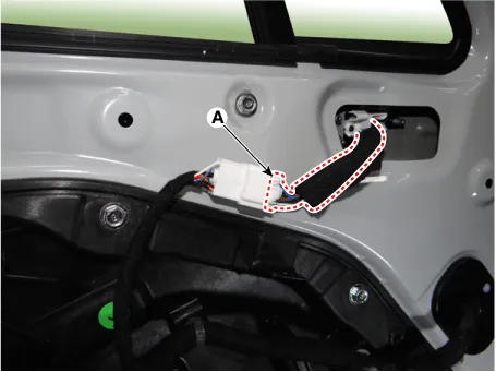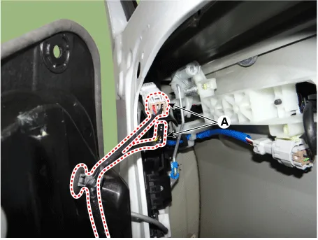 Separate the outside mirror connector (A) and remove the mounting clip.