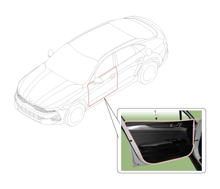 Components and components location Component Location 1. Front door window glass Repair procedures Replacement • When removing with a flat-tip screwdriver or remover, wrap protective tape around the tools to prevent damage to components.