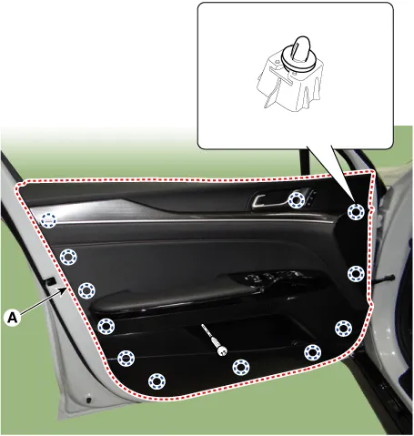 Remove the front door inside handle cage (A).