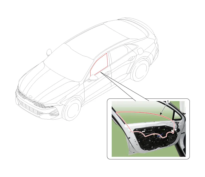 Components and components location Component Location 1. Front door module Repair procedures Replacement • When removing with a flat-tip screwdriver or remover, wrap protective tape around the tools to prevent damage to components.