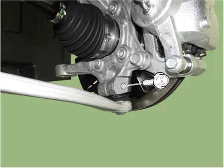 Remove the front wheel and tire. (Refer to Suspension System - "Wheel") |