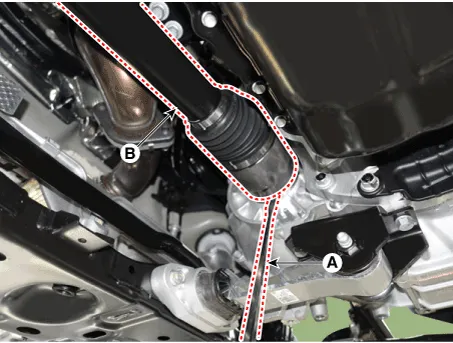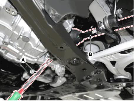 Remove the driveshaft (B) by using the pry bar (A). [LH]