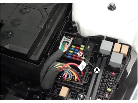 After disconnecting the negative battery terminal, remove the fuel pump fuse (A).