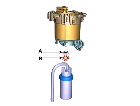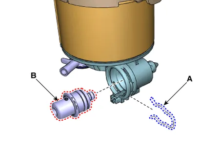Remove the fuel feed tube quick-connector (B) after remove the clip (A).