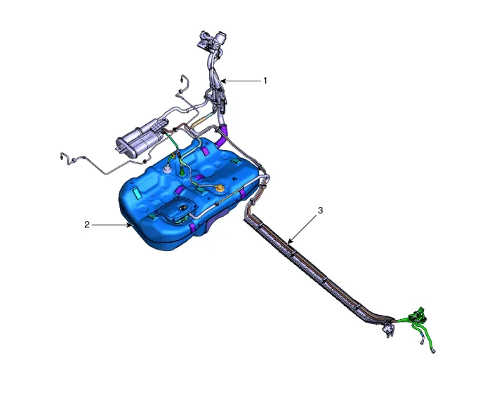 Components and components location Components 1. Filler-Neck Assembly 2. Canister 3. Fuel Tank Complete Repair procedures Removal 1.