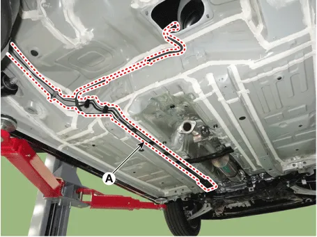 Remove the fuel line (A) from the vehicle after removing the fixing clips.