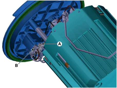 Disconnect the fuel pump motor connector (A) and fuel sender connector (B).
