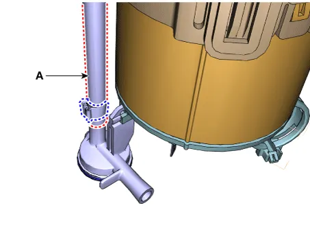 Remove the fuel feed tube quick-connector (B) after remove the clip (A).