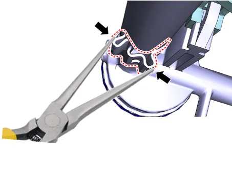 Remove the reservoir cup (A) after releasing the fixing hooks.