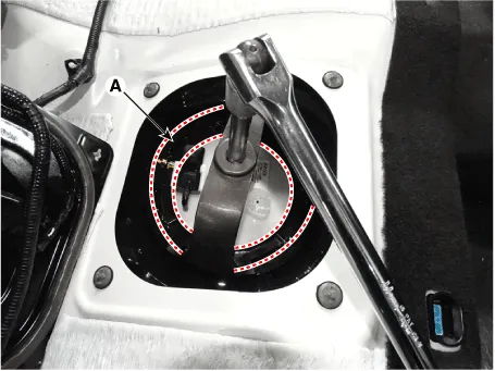Remove the fuel pump service cover (A).