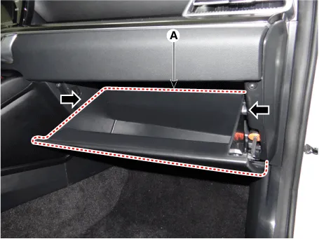 Open the glove box (A) in the direction of the arrow.