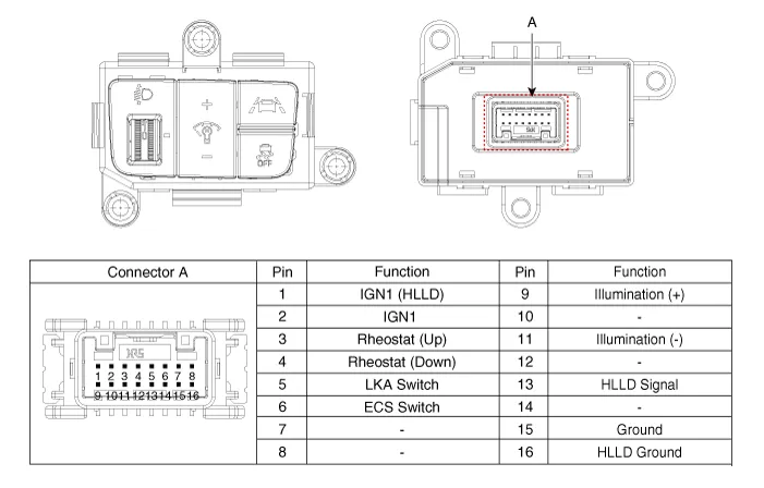 Remove the side crash pad switch (A) by loosening the mounting screws.