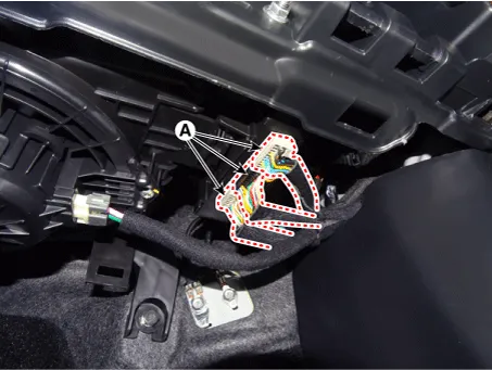 Disconnect the heater controller unit connectors (A).