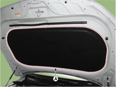 Repair procedures Replacement 1. Remove the hood seal weatherstrip (A) and then remove the clip from the panel. Be careful not to scratch the hood seal weatherstrip.