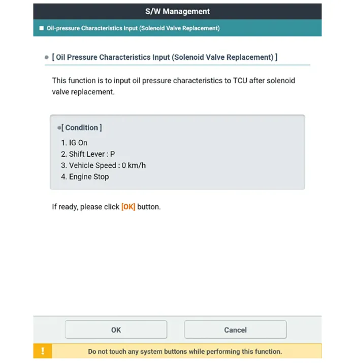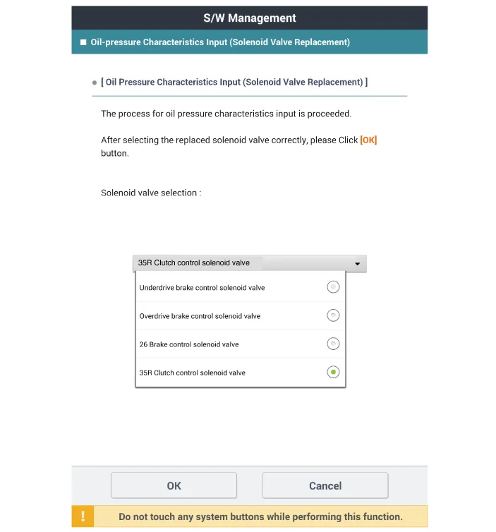 Click the "OK" button after inputting oil pressure characteristics for the replaced solenoid valve.