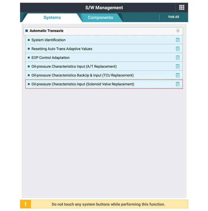 | Solenoid valve oil-pressure characteristics input procedure |