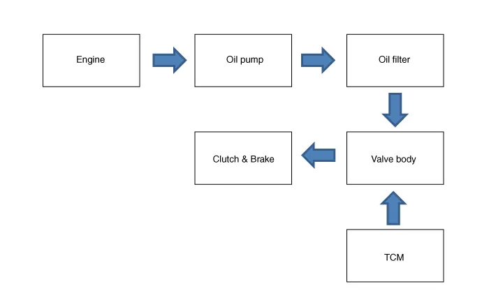 ATF passes through the oil filter and gets distributed along the oil channels. |