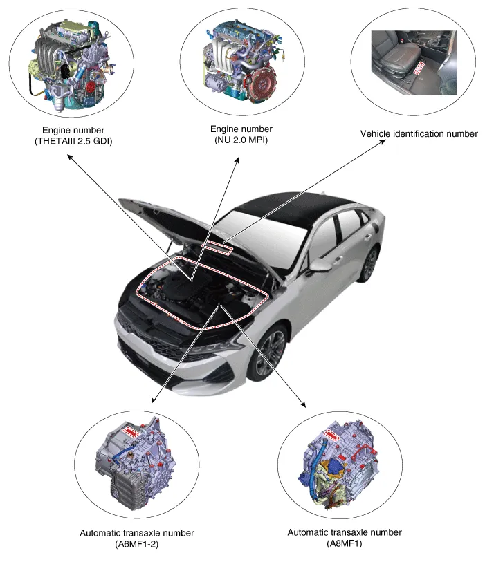 Engine type - 4 : Gasoline 2.0 MPI (NU) - 7 : Gasoline 2.5 GDI (THETAIII) |
