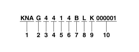 Body/Cabin type, Gross Vehicle Weight Rating KNA - 1 : Limousine - 2 : Sedan - 2 door - 3 : Sedan - 3 door - 4 : Sedan - 4 door - 5 : Sedan - 5 door - 6 : Coupe - 7 : Convertible - 8 : Wagon - 9 : Commercial Van - 0 : Pick-Up - G : Shooting Brake - 5 door - H : Fastback - 5 door KNC (Commercial vehicle / Van) Except U.S.A, Canada, Mexico, Gulf Cooperation Council, China - X : Standard Cabin / Semi-Bonnet - Y : Double Cabin / Bonnet - Z : Super Cabin / Box For U.S.A, Canada, Mexico, Gulf Cooperation Council, China - 2 : Standard Cabin Class-H 4×2 - 3 : Standard Cabin Class-E 4×2 / Semi-Bonnet Class-E 4×2 - 4 : Standard Cabin Class-E 4×4 / Semi-Bonnet Class-E 4×4 - 5 : Standard Cabin Class-F 4×2 / Semi-Bonnet Class-F 4×2 - 6 : Standard Cabin Class-F 4×4 / Semi-Bonnet Class-F 4×4 - 7 : Double Cabin Class-E 4×2 / Bonnet Class-E 4×2 - 8 : Double Cabin Class-E 4×4 / Bonnet Class-E 4×4 - 9 : Double Cabin Class-F 4×2 / Bonnet Class-F 4×2 - 0 : Double Cabin Class-F 4×4 / Bonnet Class-F 4×4 - A : Super Cabin Class-E 4×2 / Box Class-E 4×2 - B : Super Cabin Class-E 4×4 / Box Class-E 4×4 - C : Super Cabin Class-F 4×2 / Box Class-F 4×2 - D : Super Cabin Class-F 4×4 / Box Class-F 4×4 KND - 1 : Wagon 4×2 Class-A - 2 : Wagon 4×2 Class-B - 3 : Wagon 4×2 Class-C - 4 : Wagon 4×2 Class-D - 5 : Wagon 4×2 Class-E - 6 : Wagon 4×2 Class-F - 7 : Wagon 4×2 Class-G - A : Wagon 4×4 Class-A - B : Wagon 4×4 Class-B - C : Wagon 4×4 Class-C - D : Wagon 4×4 Class-D - E : Wagon 4×4 Class-E - F : Wagon 4×4 Class-F - G : Wagon 4×4 Class-G KNH - 1 : Box - 2 : Bonnet - 3 : Semi-Bonnet |