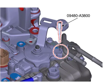 Align the hole in the manual control lever with the "N" position hole of the inhibitor switch and then insert the SST inhibitor switch guide pin (09480-A3800).