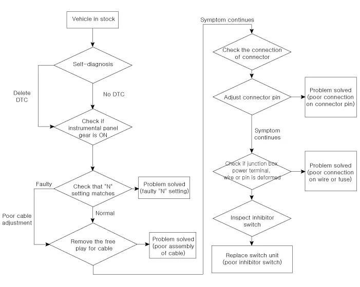 Inspect the following items by referring to inspection flow chart. (Refer to Inhibitor Switch - "Troubleshooting") |