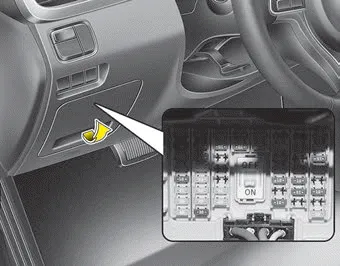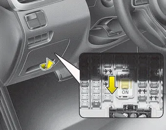If you move the switch to the OFF position, some items such as audio and digital clock must be reset and transmitter (or smart key) may not work properly. When the switch is Off, the caution indicator will be displayed on the instrument cluster.