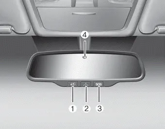 The electric rearview mirror automatically controls the glare from the headlights of the vehicles behind you in nighttime or low light driving conditions. The sensor (4) mounted in the mirror senses the light level around the vehicle, and automatically conrols the headlight glare from the vehicles behind you.