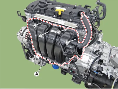 Remove the intake manifold (A) with the gasket.
