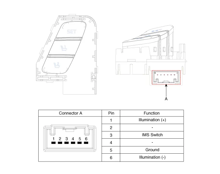 When each switch is pressed, check the electricity flow between integrated memory seat switch connector and ground.