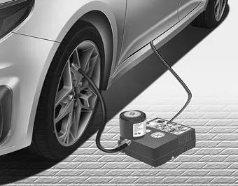 Please read the instructions before using the Tire Mobility Kit. (1) Compressor (2) Sealant bottle The Tire Mobility Kit is a temporary fix to the tire and the tire should be inspected by an authorized Kia dealer as soon as possible.