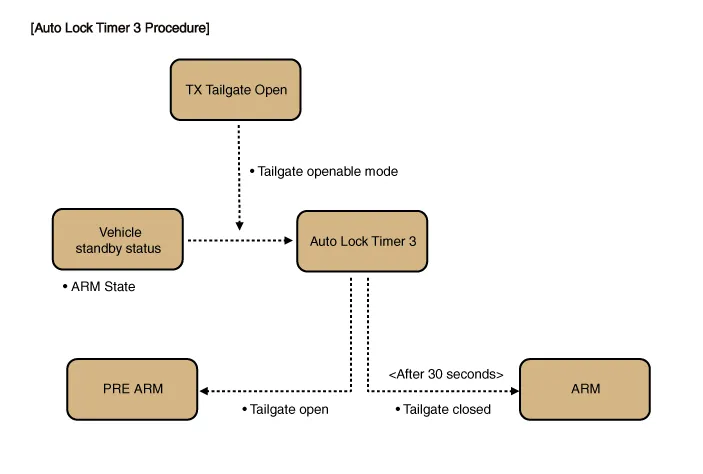 In "AUTOLOCKTIMER3" state, timer "30sec." timer is running. If this timer expired, state transits to "PREARM" state with Tailgate Open.