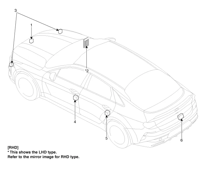 Specifications Specification Item Tyep Watt (W) Front Headlamp A Type High beam LED - Low beam LED - Position/DRL LED - B Type High beam LED - Low beam LED - Low assist LED - Position/DRL LED - Turn signal lamp LED - Fog lamp LED - Turn signal lamp (Front air duct) PY21W 21 Turn signal lamp (Outside mirror side) LED - Rear Rear combination lamp A Type Tail/Stop lamp 21/5W 21/5 Tail lamp W5W 5 Turn signal lamp PY21W 21 Back up lamp W16W 16 B Type Tail/Stop lamp LED - Tail lamp LED - Turn signal lamp PY21W 21 Back up lamp W16W 16 High mounted stop lamp LED - License plate lamp W5W 5 Interior Overhead console lamp LED - Room lamp LED - Personal lamp LED - Vanity lamp W5W 5 Trunk room lamp FESTOON 5 Components and components location Component Location 1.