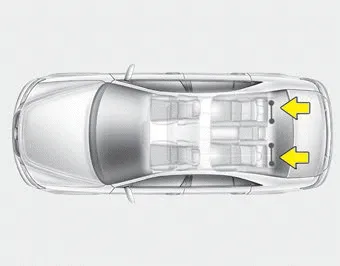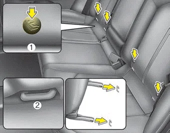 LATCH anchors have been provided in the left and right outboard rear seating positions. Their locations are shown in the illustration. There are no LATCH anchors provided for the center rear seating position.