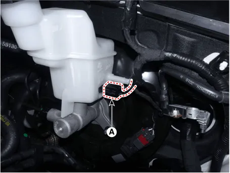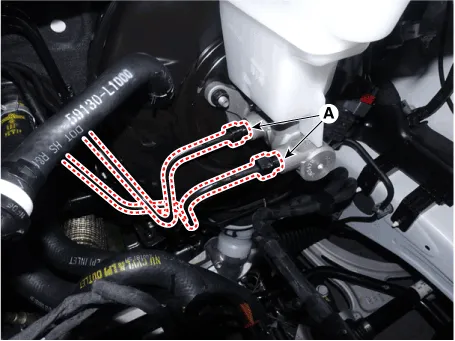 Remove the master cylinder (A) after loosening the master cylinder nuts.