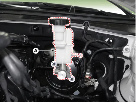 Separate the reservoir from the master cylinder after remove the screw (A).