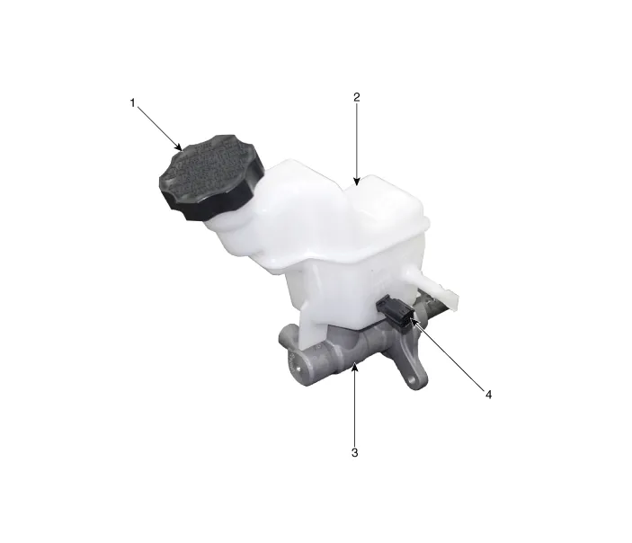 Components and components location Components 1. Reservoir cap 2. Reservoir 3. Master cylinder 4. Brake fluid level sensor 5.
