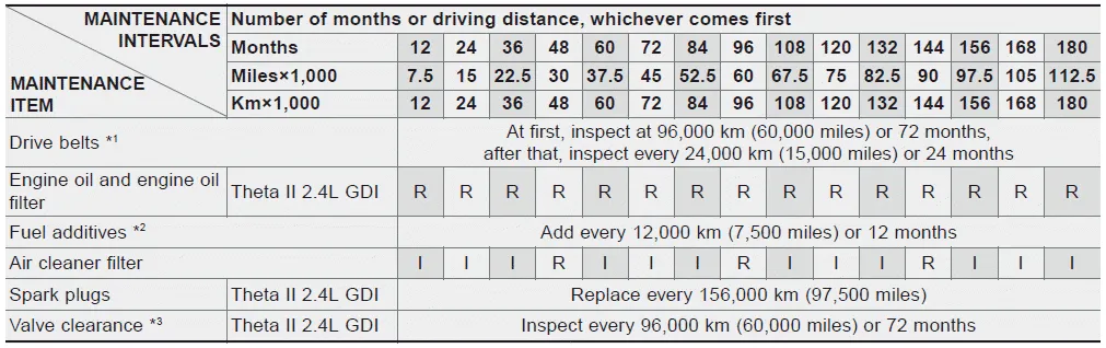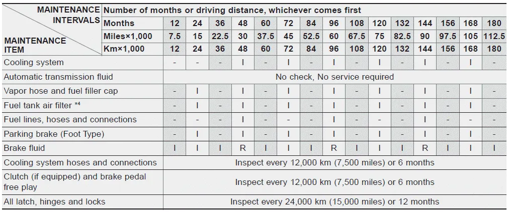 Keep receipts for all vehicle emission services to protect your warranty. Where both mileage and time are shown, the frequency of service is determined by whichever occurs first.