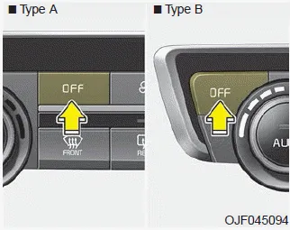 Press the front blower OFF button to turn off the front air climate control system. However, you can still operate the mode and air intake buttons as long as the ignition switch is in the ON position.