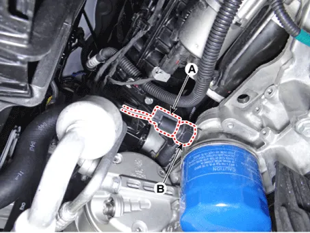 Disconnect the oil pressure switch connector (A) and then remove the oil pressure switch (B).