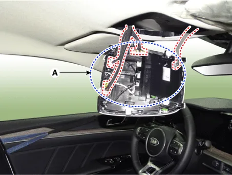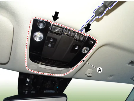 Remove the overhead console lamp (A) by using a flat-tip screwdriver or remover.