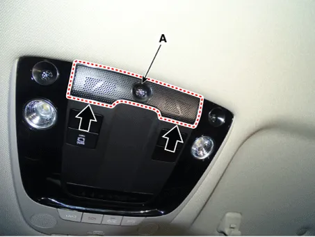 Remove the overhead console lamp mic grill (A) by using a flat-tip screwdriver or remover.