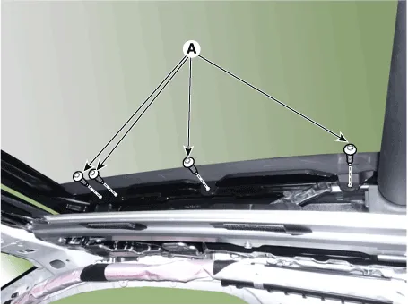 Repair procedures Replacement 1. Open movable glass completely pressing panorama sunroof switch. 2. Remove the slide folding cover (A).