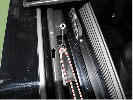 Remove the panoramic sunroof deflector fixing bracket (A) by pushing it upwards like an arrow.