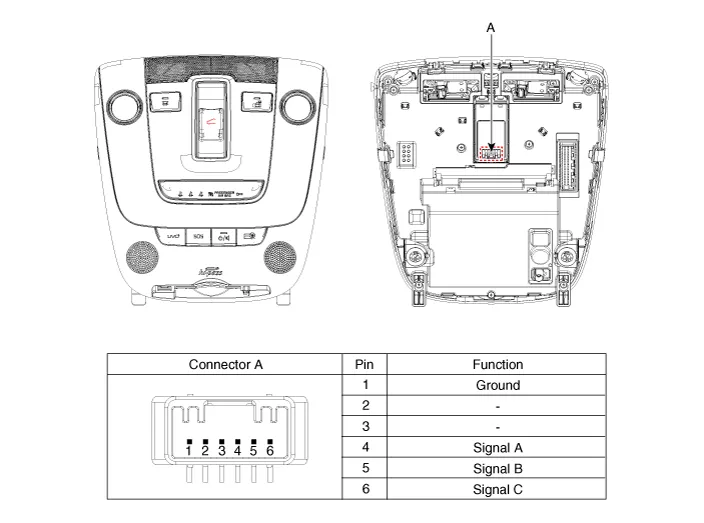 Repair procedures Removal 1. Disconnect the negative battery terminal. 2. Remove the trunk room lamp (A) by pressing the hook. 3. Disconnect the trunk room lamp connector (A).
