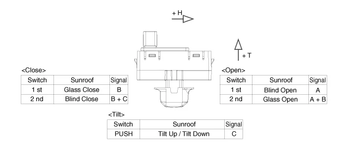 If the sunroof switch needs to be replaced, replace the overhead console lamp assembly. (Refer to Lighting System - "Overhead Console Lamp") |