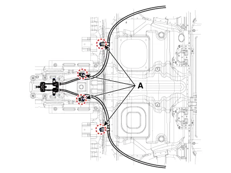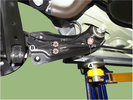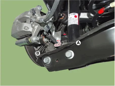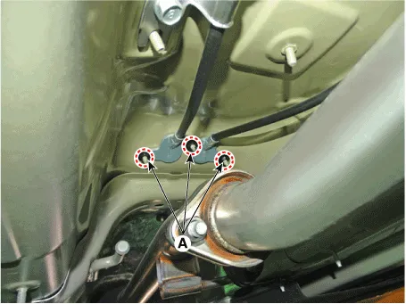 Loosen the parking brake cable bracket mounting bolt (A) and nuts (B).