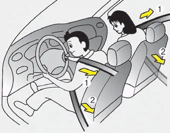 Your vehicle is equipped with driver's and front passenger's pre-tensioner seat belts (retractor pretensioner and EFD (Emergency Fastening Device)). The pre-tensioner seat belts may be activated, when a frontal collision is severe enough, together with the air bags.