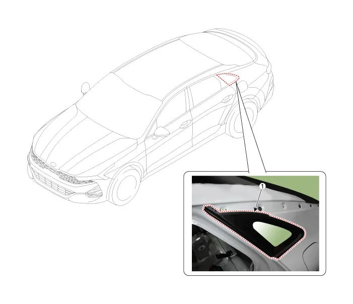 Components and components location Component Location 1. Rear window glass 2. Rear window glass molding Repair procedures Removal Put on gloves to prevent hand injuries.