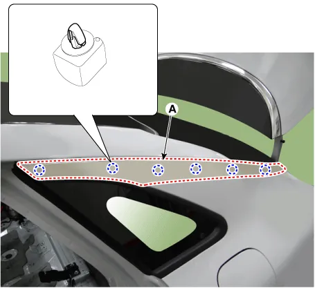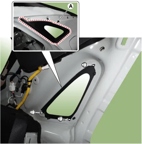 Using a screwdriver or remover, remove the C Pillar garnish (A).