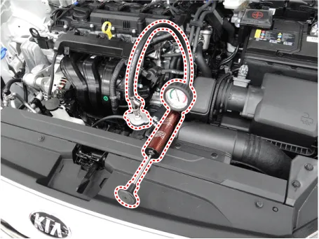 Apply a pressure tester to the radiator and apply a pressure of 125.52 - 154.94 kpa (1.28 - 1.58 kg/cm², 18.21 - 22.47 psi). |